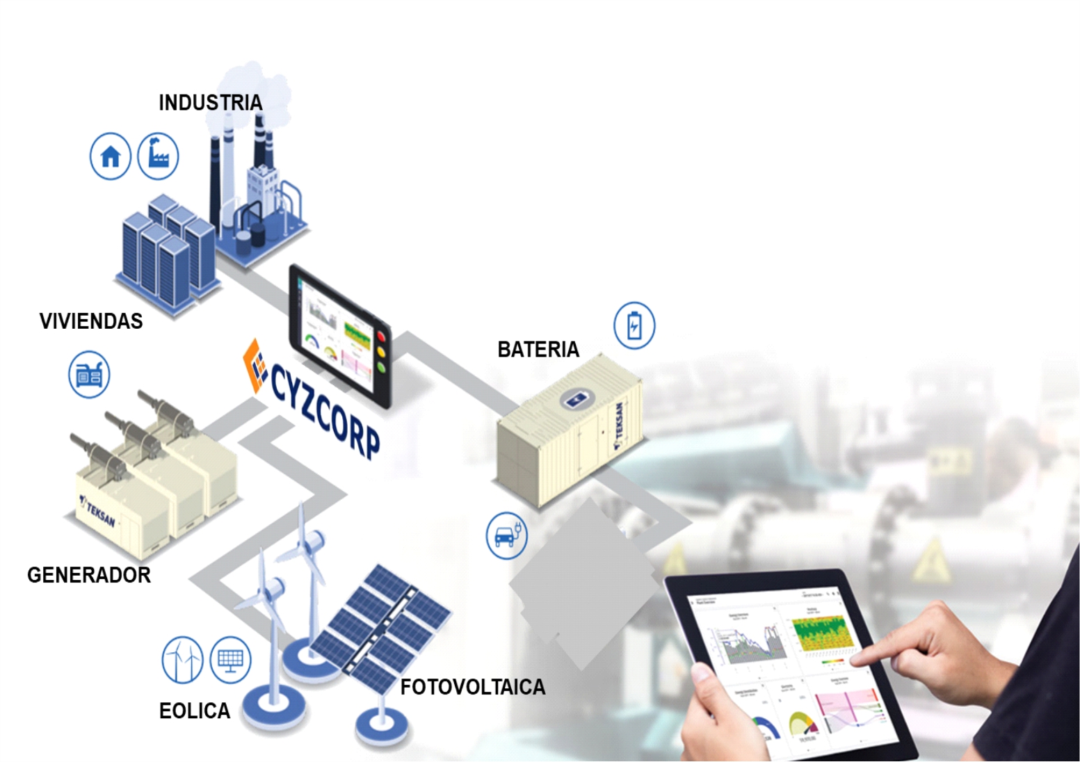 CYZCORP ofrece también como opción de electrificación la implementación de una MINICENTRAL conectada a RED, que consisten en una solución- HIBRIDA eólicos–fotovoltaica, con respaldo diésel además conectada a la RED eléctrica.